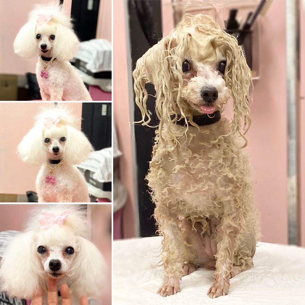 小さなトイプードルカリンちゃんお手手もお顔もちっちゃくて可愛いお目目だけクリクリ✨大きいねっ身体8ミリバリカン手足5ミリ&✂️でスッキリ短め手足先1ミリシッポまーるく✂️お耳揃える程度✂️お顔1ミリ頭トップノット結んで🎀今日もクレイパックでふわふわだねっ本日もご利用ありがとうございます今年1年ありがとうございました☆来年もよろしくお願いします♪次回ご予約ありがとうございました☆