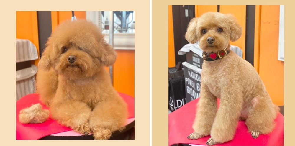 マロンくんおとなしくて素直で優しいのトリミング中も話しかけると聞いてくれるよいい子だね〜🎶身体5ミリバリカン手足先1ミリ手足✂️シッポはまーるく✂️お耳は短め✂️お顔はまーるく頭もまーるく✂️本日もご利用ありがとうございました☆ Before After ↓ ↓